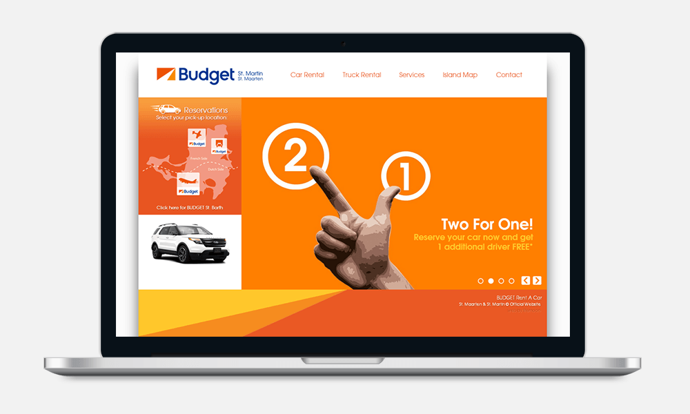 We built the official St. Maarten Budget Car Rental Web App applying the brand guide lines in a slick interface.