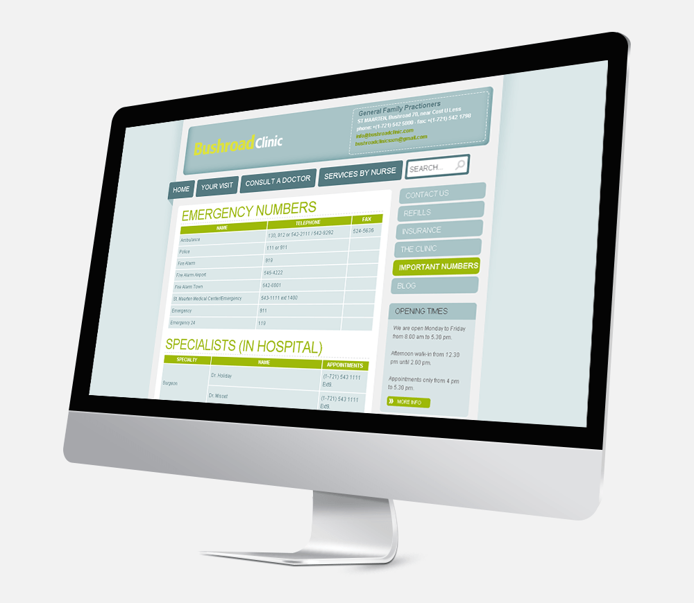 We helped the Bushroad Clinic to provide information to their patients. The site includes a regularly updated emergency number directory for St. Maarten.