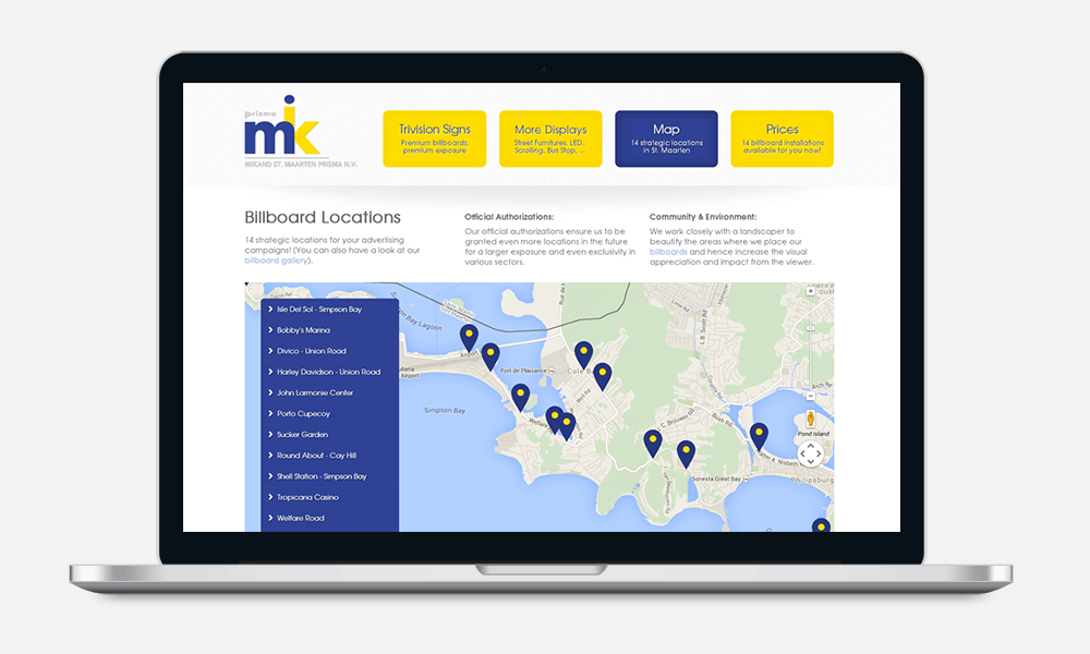 Presenting all the information about Mikand Prisma's billboards, the Web App features a map showing all the locations available.